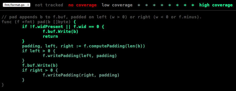 It does work, though, and for instance if you are a user of gccgo, the gcov tool can give you test coverage information. However If you’re a user of gc, the more commonly used Go compiler suite, until Go 1.2 you were out of luck.