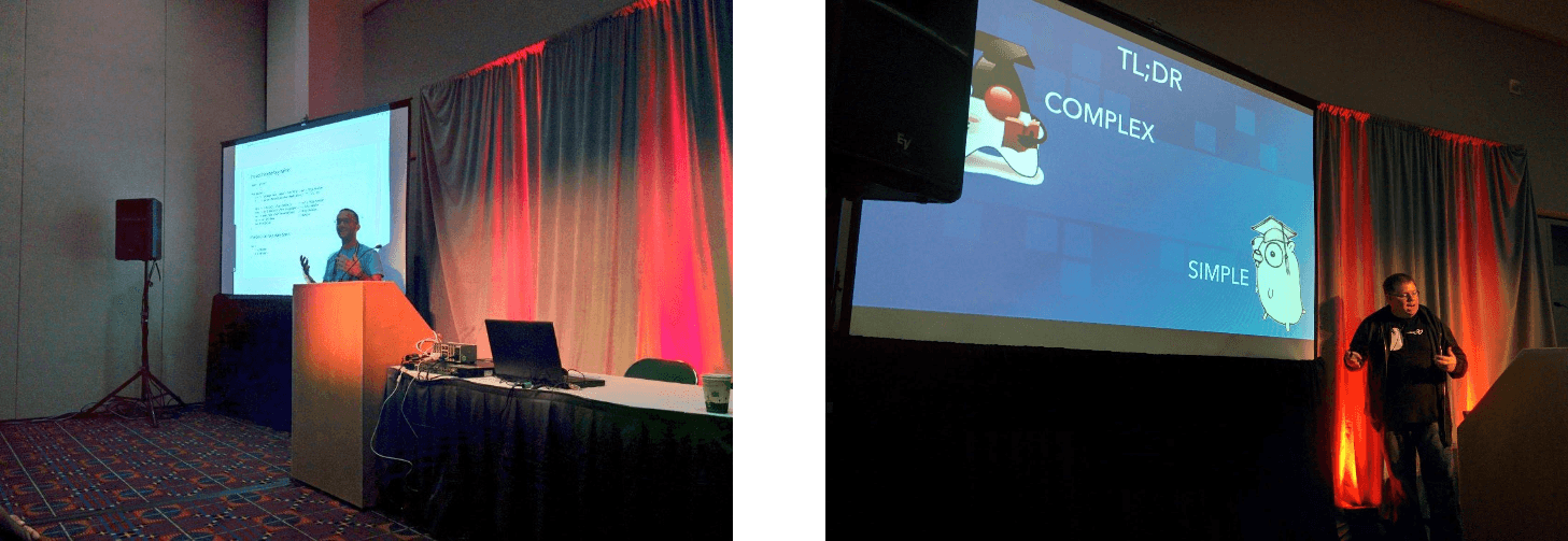 In the afternoon, Chris McEniry gave his Quick introduction to system tools programming with Go where he went over some useful skills to write system tools using Go and its standard library.