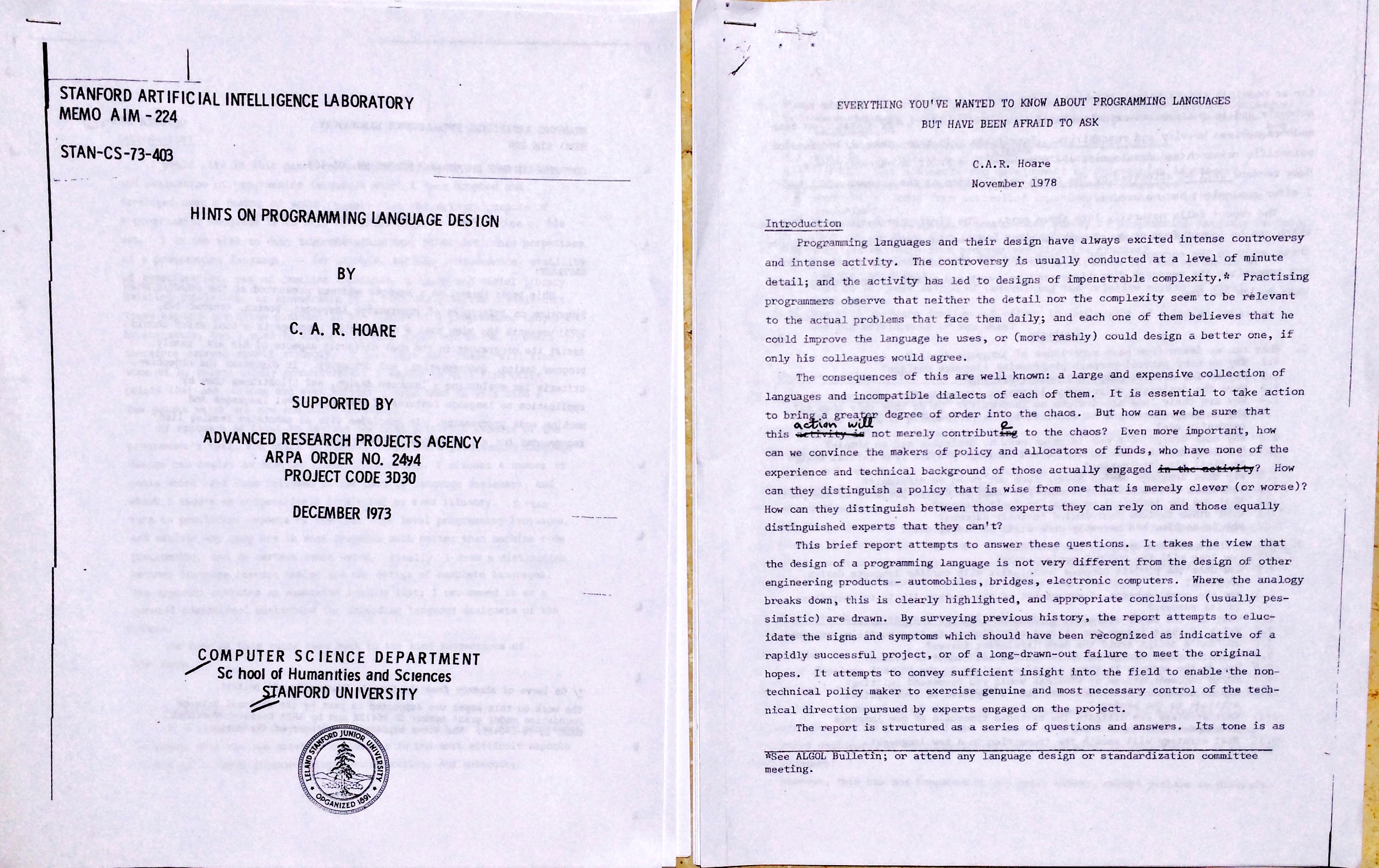 "Here is a language [Algol60] so far ahead of its time, that it was not only an improvement on its predecessors, but also on nearly all its successors." (C.A.R. Hoare)